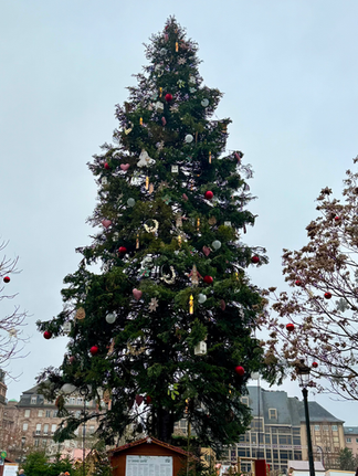 Afterward, with a mug of vin chaud (France’s version of glühwein) in hand, we slowly made our way from market to market, soaking up the festive atmosphere. The towering Christmas tree at Place Kléber was especially impressive, standing like a glowing centerpiece for the entire city.