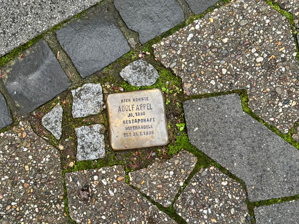 As we walked through the streets of town, our tour guide Thomas stopped to show us small metal squares – called stumbling stones – inlaid in the sidewalk. Created by artist Gunter Demnig, the stumbling stones contain the names, birth/death dates, and location of death of residents of Koblenz who were victims of the Holocaust and murdered by the Nazis during WWII. The location of each metal square signifies the building or house where each victim once lived. Prior to 1936, Koblenz had a Jewish population of more than 600; only 20 Jewish residents were alive after 1945. Stumbling stones were inspired by the Jewish saying, “A person is only forgotten when their name is forgotten.” Koblenz is not the only place to have these stones; they exist in other cities and countries across Europe, but this was the first time we learned of them.