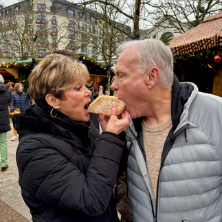 The afternoon brought us to yet another town on the Rhine, Mainz. We opted for the short drive to nearby Wiesbaden, and we’re so glad we did. One of Germany’s oldest spa towns, Wiesbaden was beloved by Roman emperors and, later, European aristocracy for its thermal springs, many of which still flow today. The city’s Christmas market was set in front of the beautiful and stately red-hued, neo-Gothic Marktkirche and the Palace Square. It was one of the larger markets we’ve visited on this trip, and twinkling lights throughout the trees and hanging above the stalls made it particularly charming.